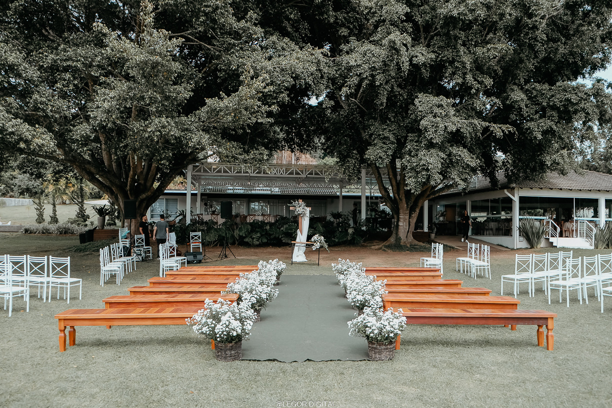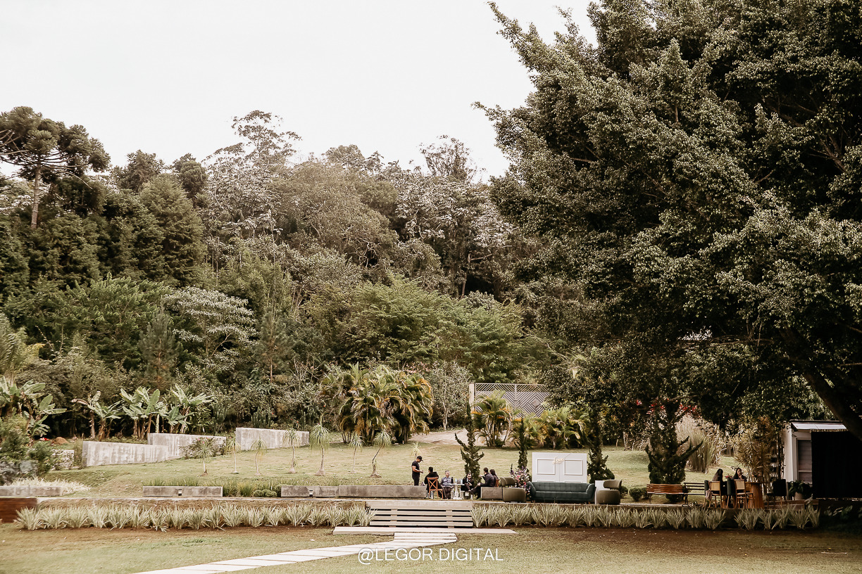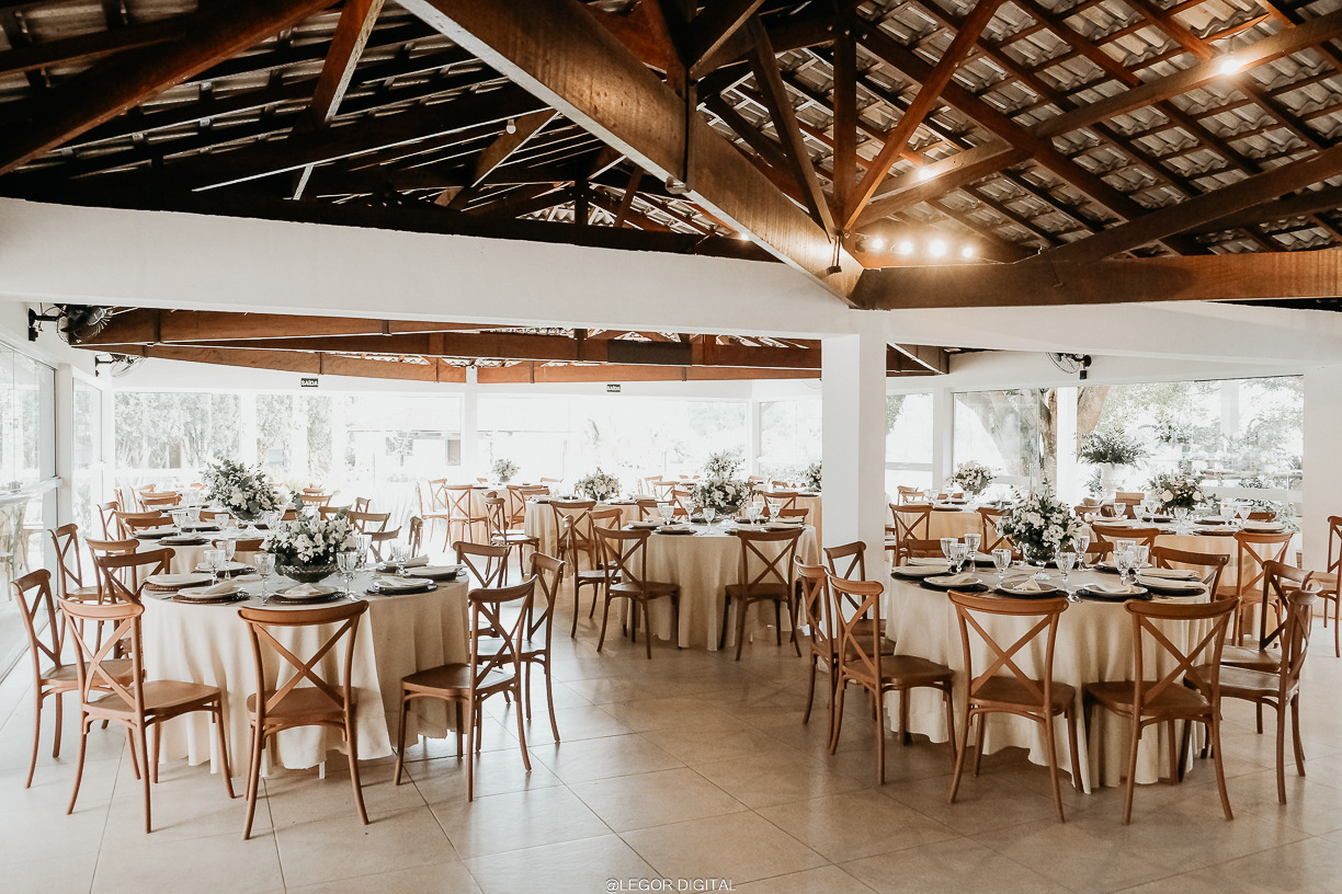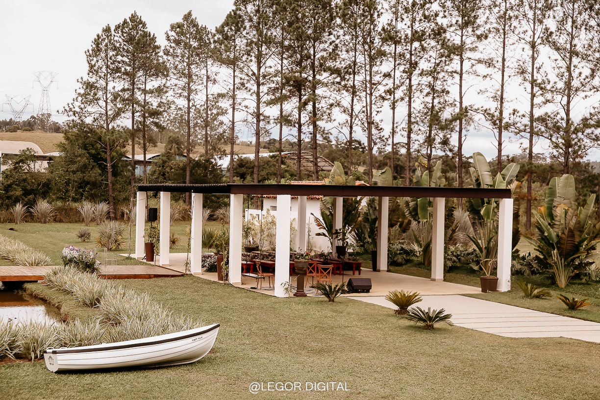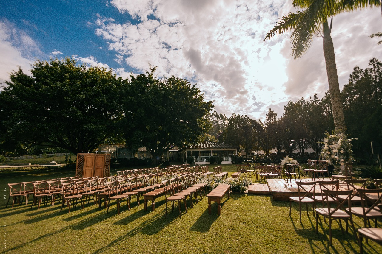 Contamos também com uma belíssima área de jardim, um lago e um imenso gramado. Além do estacionamento, cozinha de apoio e a sala da noiva.
