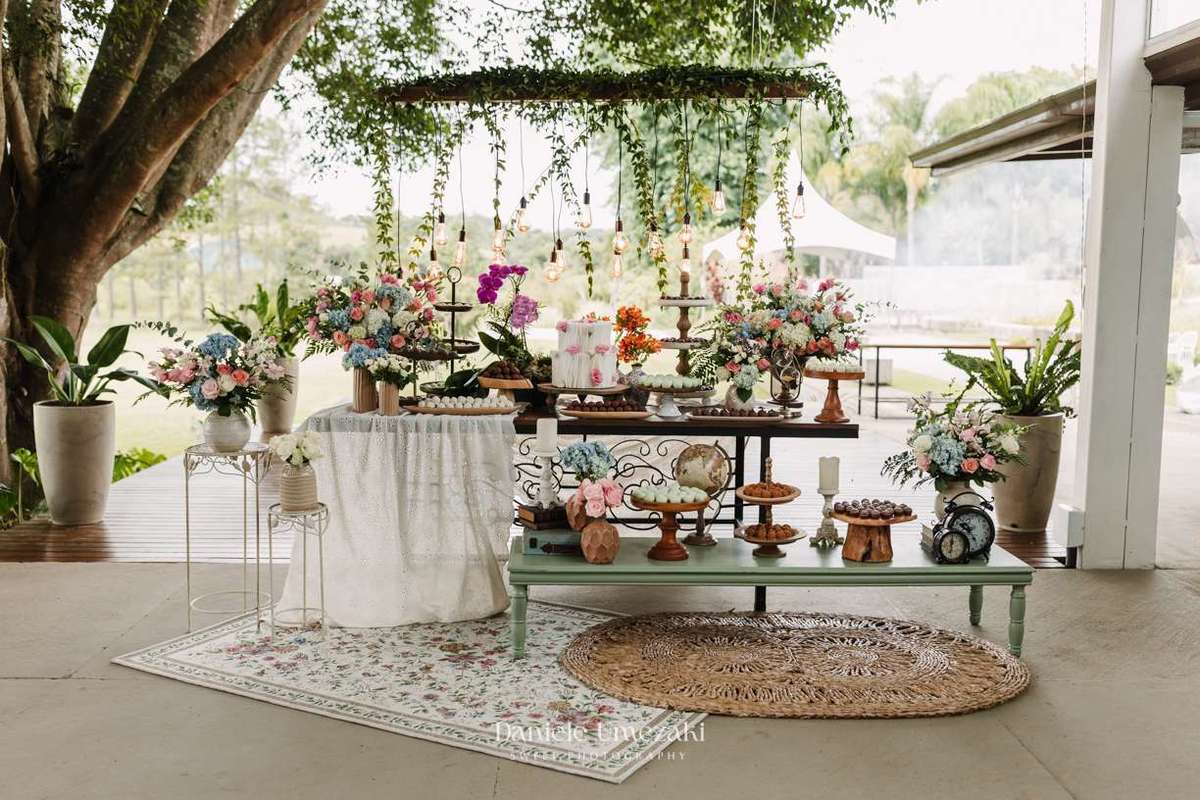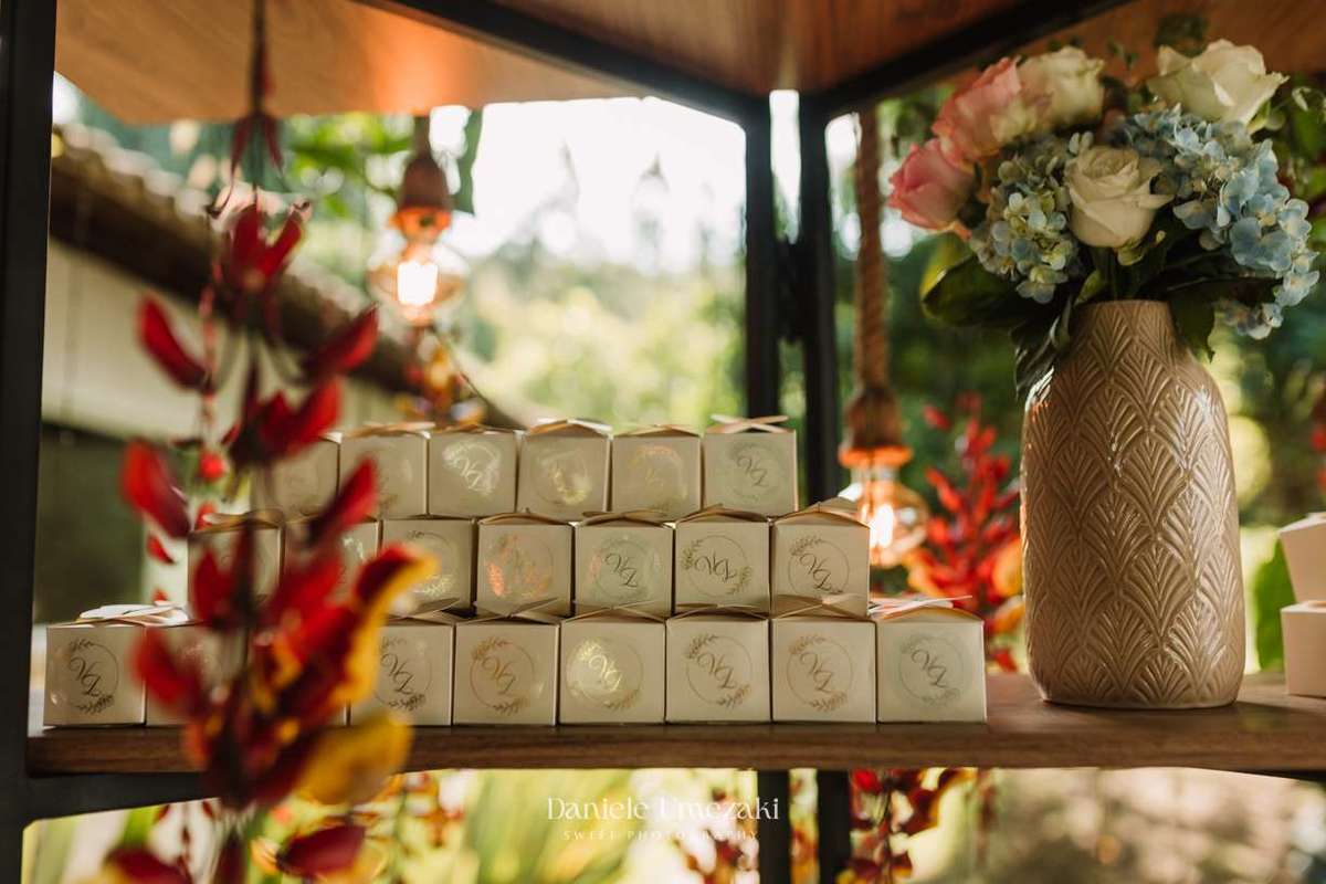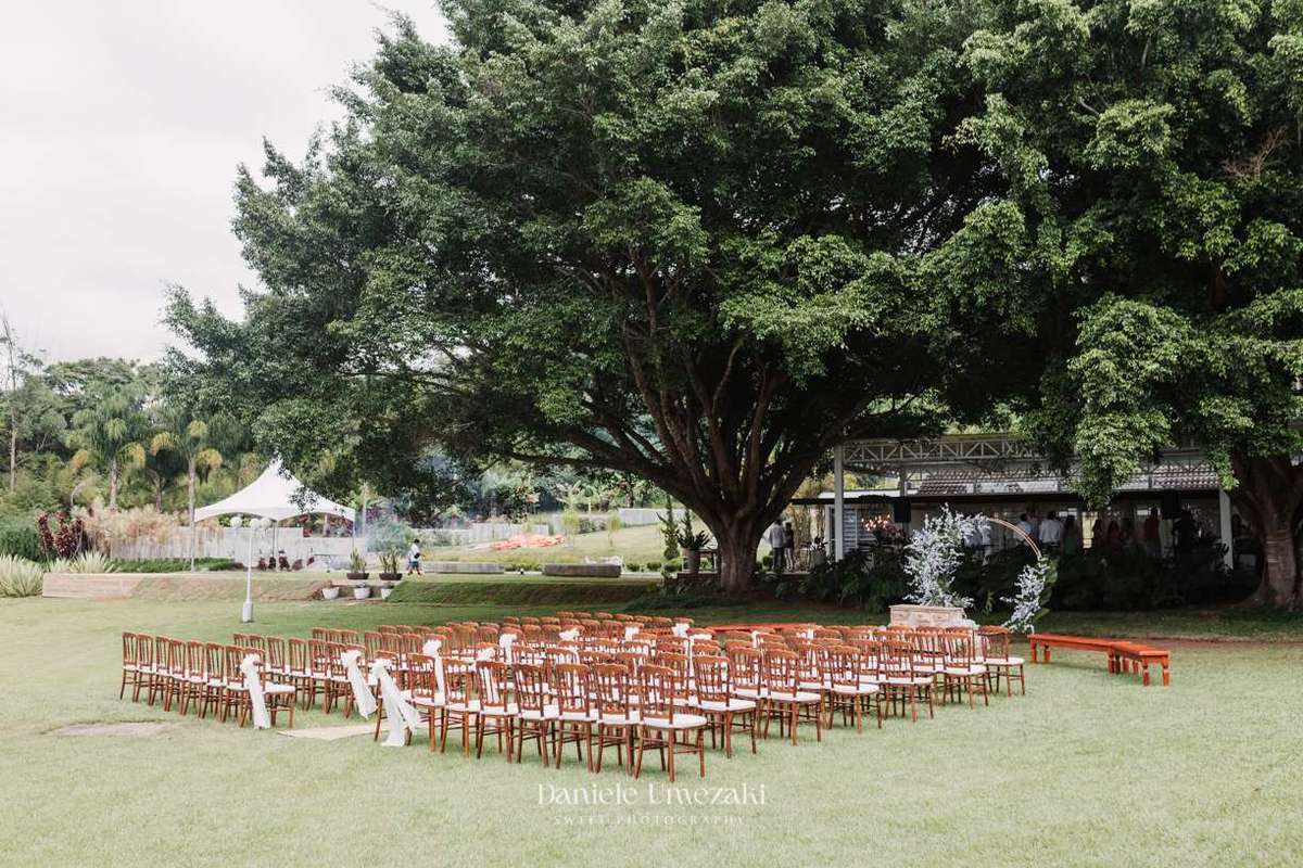 A cerimônia foi realizada entre as figueiras, num sábado de sol e de muita alegria. Essa é uma das opções que mais são escolhidas por ser entre essas duas árvores que esbanjam sua beleza natural e compõem um cenário encantador e acolhedor.